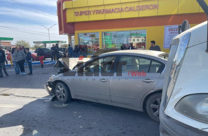 NUEVO LAREDO, TAM.- Un accidente vial múltiple se registró en el crucero de la avenida Monterrey y Lago de Chapala, en la colonia Los Encinos, donde una pipa de agua se vio involucrada en un choque en cadena que dejó como saldo dos menores lesionados y cuantiosos daños materiales.