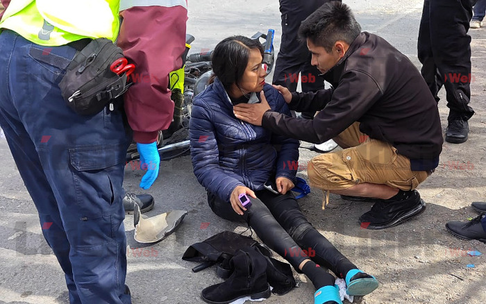 Paramédicos de la Dirección de Protección Civil y Bomberos arribaron al sitio para brindar atención prehospitalaria a los lesionados, confirmando que la mujer presentaba dolor generalizado y el menor un golpe en la cabeza.