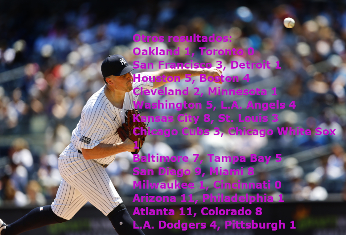 Por los Yankees, los venezolanos Gleyber Torres de 4-2 con una anotada, Carlos Narváez de 3-0. El dominicano Juan Soto de 4-0.