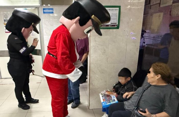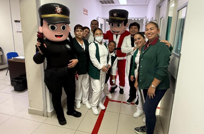 Asimismo, los elementos acudieron al Hospital General-IMSS Bienestar, donde compartieron un mensaje de ánimo y entregaron obsequios a menores y familias que permanecen en esta institución por motivos de salud.