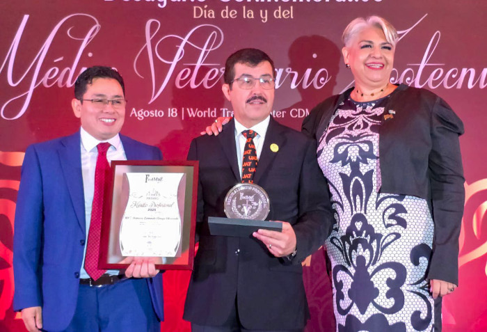 La ceremonia celebrada en la capital del país fue encabezada por el secretario de Agricultura y Desarrollo Rural del Gobierno de México, Julio Berdegué Sacristán, y la presidenta de la FedMVZ, Laura Arvizu Tovar, quienes resaltaron la importancia de reconocer la labor de los médicos veterinarios zootecnistas en la salud animal, la seguridad alimentaria y el bienestar social, destacando la contribución de líderes como el rector Dámaso Anaya para el fortalecimiento de este sector.