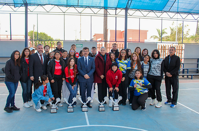 Acompañado de la directora de la UAM Matamoros, Yolanda Castillo Muraira, y del enlace institucional de la UAT en la zona norte, Ignacio Hernández Rodríguez, el rector visitó las canchas deportivas donde entregó reconocimientos a integrantes del equipo de Básquetbol 3×3 Femenil, quienes obtuvieron el primer lugar en el Torneo Interfacultades 2024. Asimismo, entregó trofeos a los equipos que destacaron en sus respectivas disciplinas: Fútbol Soccer Femenil, Fútbol Bardas Femenil, Básquetbol Femenil, Voleibol Sala Femenil y Tochito Bandera Femenil.