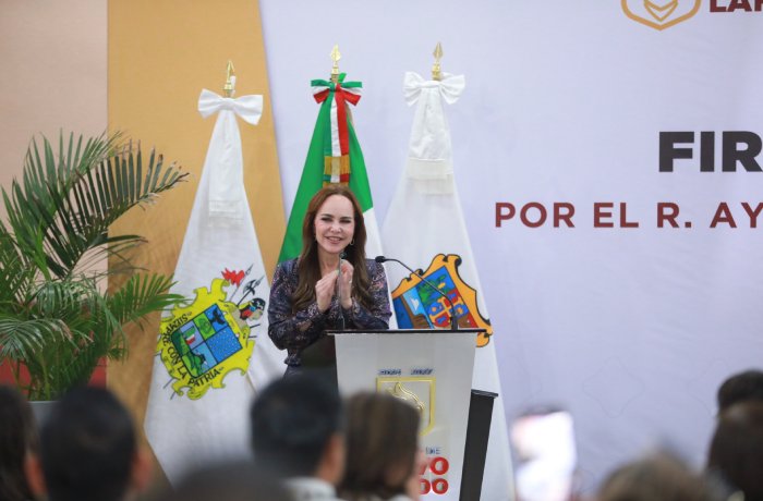Nuevo Laredo, Tam.- En un acto que refuerza el compromiso con la base trabajadora del municipio, la presidenta municipal, Carmen Lilia Canturosas Villarreal, encabezó la firma del Contrato Colectivo de Trabajo con el Sindicato Único de Trabajadores al Servicio del Municipio de Nuevo Laredo, consolidando mejoras significativas en las condiciones laborales y el bienestar de las y los empleados municipales.