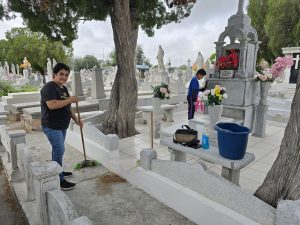Tal es el caso del Familia Guajardo Villarreal, que visitaron a sus parientes: dos personas adultas que dejaron el plano terrenal, pero que recibieron el amor de sus familiares que no los olvidan, y que les dieron el tiempo además de dar mantenimiento a sus lápidas en víspera del Día de Muertos.