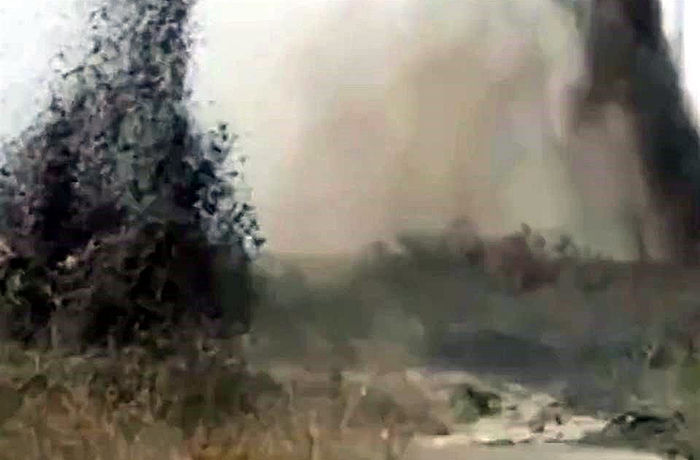 En minutos, el combustible se extendió entre el monte hasta convertirse en un río con borbollones color negro que alcanzan varios metros de altura.