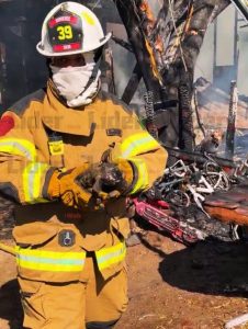 NUEVO LAREDO, TAM .- Personal de Protección Civil rescató con vida y brindó atención inmediata a una cachorrita que resultó con graves quemaduras durante el incendio registrado en la cuadra 1200 de la calle Gutiérrez, en la colonia Victoria, siniestro en el que también se reportó el fallecimiento de una persona.