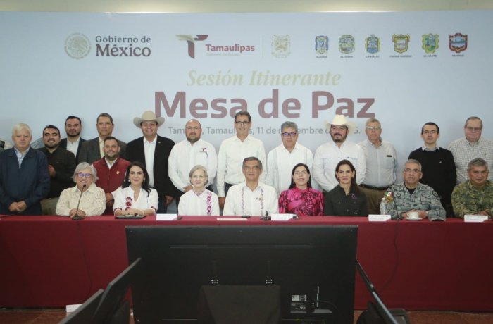 Al presidir la sesión itinerante de la Mesa de Paz, acompañado por la presidenta del Sistema DIF Estatal, doctora María de Villarreal, en las instalaciones de la Expo Tampico, en donde también asistieron integrantes de la Mesa Ciudadana de Seguridad y Justicia, el mandatario estatal expresó que esta reunión de trabajo es un ejemplo de la unión y participación que se tiene en Tamaulipas para lograr mejores oportunidades y tiempos de solución de los problemas.