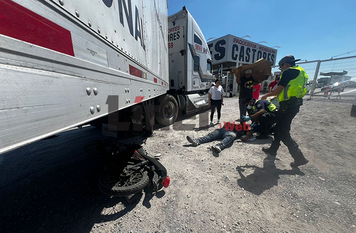 Tras el choque, el motociclista logró evitar quedar debajo del tractocamión y quedó sobre la carpeta asfáltica, mientras que testigos solicitaron el apoyo de los cuerpos de emergencia.