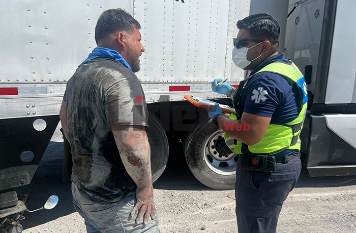 NUEVO LAREDO, TAM.- Un motociclista resultó con lesiones menores luego de verse involucrado en un accidente con un tractocamión la tarde del viernes sobre la Carretera Aeropuerto, a la altura del bulevar Anzures, frente a las instalaciones de la empresa transportista Castores.