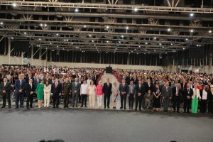 Acompañado por la doctora María de Villarreal, presidenta del DIF Estatal; la gobernadora de Veracruz, Rocío Nahle García; el gobernador de Oaxaca, Salomón Jara Cruz; el gobernador de Puebla, Alejandro Armenta Mier; y el coordinador de asesores de la Presidencia de la República, Jesús Ramírez Cuevas, así como representantes de las gobernadoras y gobernadores de Tlaxcala, San Luis Potosí, Quintana Roo, Nuevo León, Zacatecas y Coahuila, además del presidente de la Cámara de Diputados, Sergio Gutiérrez Luna, senadores, senadoras y diputados federales y locales, el gobernador agradeció a todos los presentes la distinción de acompañarlo en este evento.