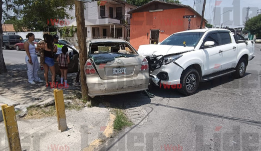 NUEVO LAREDO, TAM .- Cinco personas, dos de ellas menores de edad, salieron ilesas del accidente en un transitado crucero de la colonia Juárez en esta frontera.