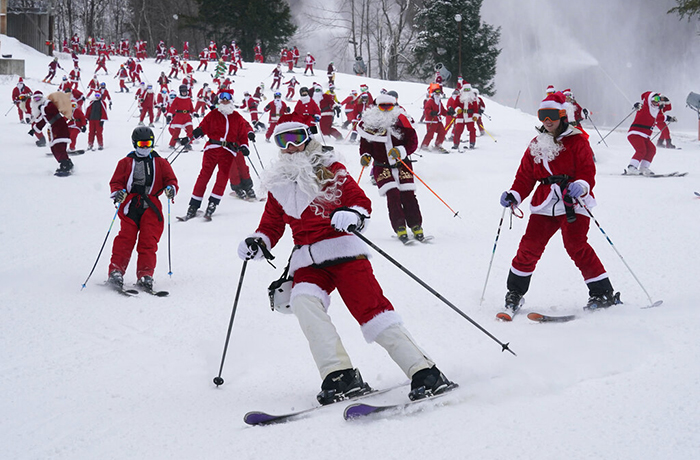 PORTLAND.- Cientos de personas disfrazadas de Santa Claus esquiaron por una montaña en Maine como parte de un evento caritativo.