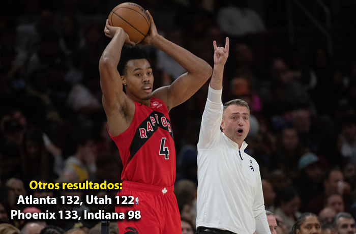 Los Raptors venían de una victoria por 119-109 sobre Brooklyn el martes y aprovecharon que los Cavaliers jugaban en noches consecutivas. Cleveland venció a Miami 130-116 el miércoles y no contó con su astro Darius Garland (lesión en dedo del pie) ni con Lonzo Ball (descanso).