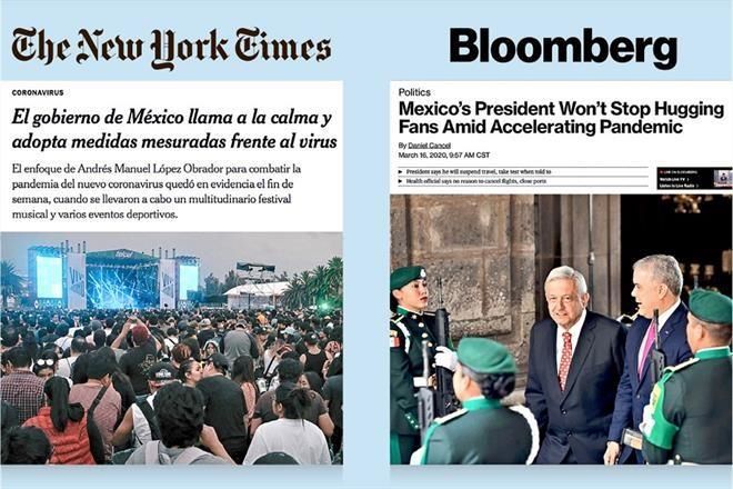 Medios internacionales cuestionaron al Gobierno por haber permitido el concierto de Vive Latino en la Ciudad de México, por la tardía cancelación de las ligas de futbol, y por mantener los besos, abrazos y apapachos en los mítines de AMLO.