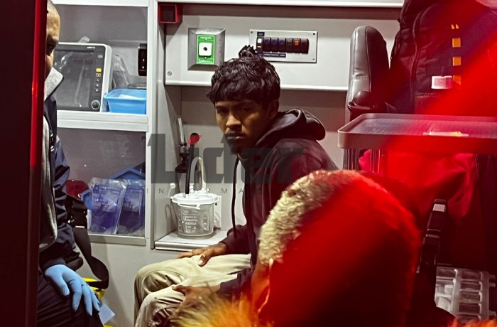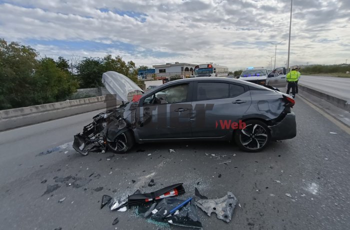 NUEVO LAREDO, TAM.- Por una falla en los frenos de la camioneta que conducía, un hombre chocó por alcance contra un automóvil y se estrelló contra la base de un puente peatonal.