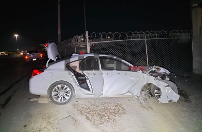 NUEVO LAREDO, TAM.- Un aparatoso accidente vial se registró sobre la Carretera Aeropuerto, luego de que una maniobra imprudente derivara en la volcadura de una camioneta y en el impacto de un automóvil contra la infraestructura eléctrica.