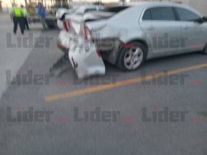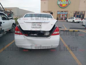 NUEVO LAREDO, TAM .- Un accidente en la intersección de la avenida César López de Lara con la calle Baja California involucró a tres vehículos, dejando considerables daños materiales. El incidente comenzó cuando el conductor de un camión Nissan Estaquitas, perteneciente a un negocio local de venta de cristales, impactó por alcance la parte trasera de un Chevrolet Malibú que circulaba delante de él. Este último vehículo, a su vez, chocó contra un Nissan Tida que se encontraba frente a él.