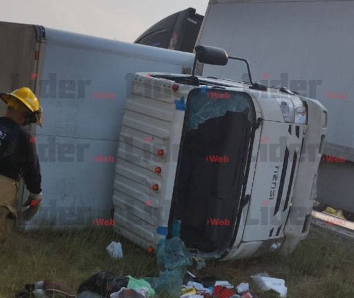 NUEVO LAREDO, TAM .- Dos hombres lograron sobrevivir a una impactante volcadura en la autopista Monterrey-Nuevo Laredo, luego de que el vehículo en el que viajaban se saliera del camino al evitar lo que parecía ser un cerrón por parte de un tráiler.