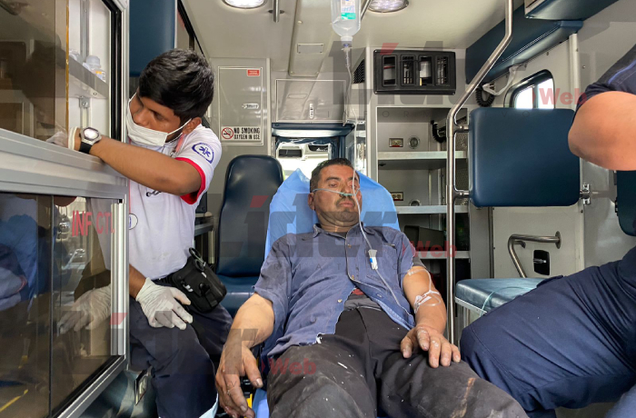 Paramédicos de la Dirección de Protección Civil y Bomberos auxiliaron a Armando, de 50 años, quien una vez estabilizado fue trasladado al Hospital General donde quedó internado.