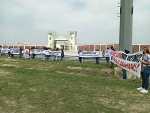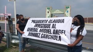 Otros familiares que también estuvieron presentes en esta manifestación pacífica fueron madres de tres jóvenes acribillados por el Ejército Mexicano el 3 de julio del 2020 cerca del Aeropuerto Internacional de este municipio.