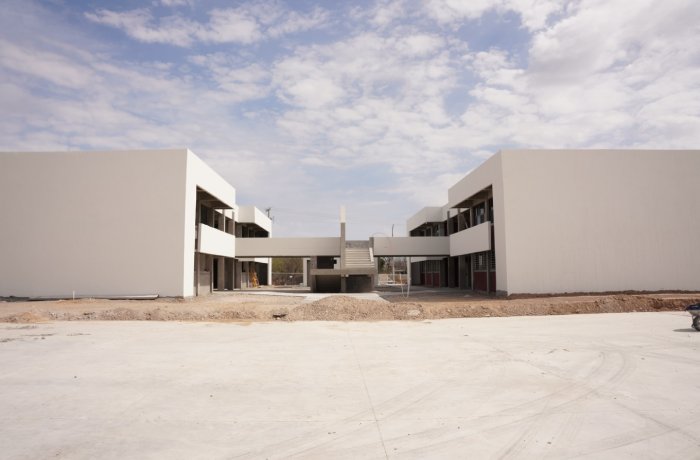 También se lleva a cabo la rehabilitación del edificio existente, que contempla mejoras en el estacionamiento, edificio de aulas sur y norte, módulo de escaleras, módulo de sanitarios, cancha deportiva, explanada, asta bandera y bebederos.
