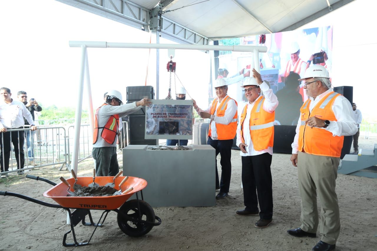 Altamira, Tamaulipas. – Tamaulipas es el segundo estado a nivel nacional con mayor inversión para el manejo sustentable del agua, afirmó el gobernador Américo Villarreal Anaya, al poner la primera piedra de la Planta Tratadora de Aguas Residuales (PTAR) “La Pedrera”, en el municipio de Altamira.
