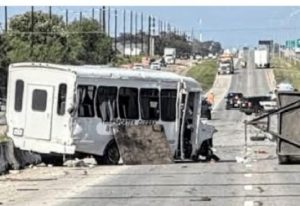 Mueren 4 personas en choque entre autobús y auto robado en Texas