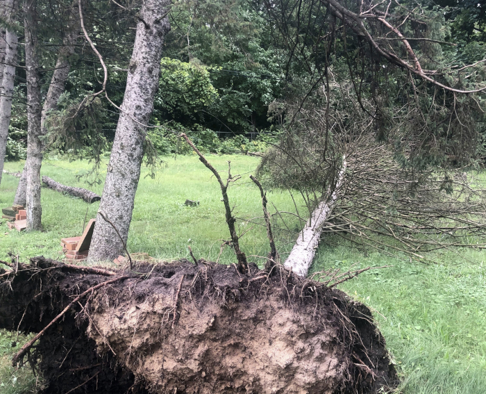Las tormentas del jueves arrancaron árboles de raíz y techos. Muchos caminos resultaban intransitables debido a la caída de árboles y postes de electricidad.