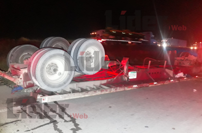 La plataforma cargada con rollos de alambre invade el carril contrario, chocando contra el frente de tracto camión Freightliner, conducido por Víctor Manuel, quien iba de norte a sur.