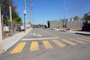 Una de las obras entregadas corresponde a la pavimentación con carpeta asfáltica por Privada Eugenio Aguirre, entre calle Francisco Villa y calle Sin Nombre, así como por calle Sin Nombre entre Eugenio Aguirre y Prolongación Pablo González, con una inversión de 2 millones 661 mil 899 pesos con 01 centavos.