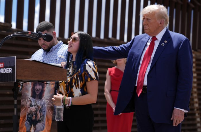 Trump trajo consigo a madres en duelo, al jefe de policía del condado de Cochise y al presidente del sindicato de la Patrulla Fronteriza para reforzar su mensaje en la frontera durante la visita del jueves, la cual fue promovida bajo el lema: “Hagamos seguro a Estados Unidos otra vez”.
