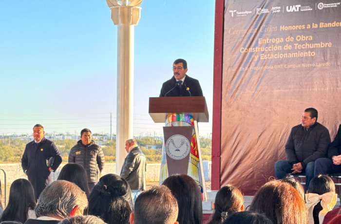 La entrega, realizada en el marco de apertura del ciclo escolar 2026-1 de la UAT, incluyó la techumbre monumental, diseñada para proteger a los estudiantes de las inclemencias del tiempo durante sus actividades al aire libre; así como el estacionamiento, destinado a mejorar la movilidad y el orden dentro del plantel.