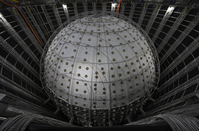 Los trabajadores comenzaron el miércoles la etapa final de la construcción. En algún momento, llenarán el detector en forma de orbe con un líquido diseñado para emitir luz cuando los neutrinos pasen a través de él y sumergirán todo en agua purificada.