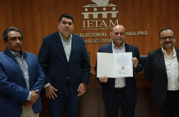 A nombre de Américo Villarreal Anaya, la constancia fue recibida por Eduardo Govea Orozco, representante legal del Movimiento de Regeneración Nacional ante el IETAM.