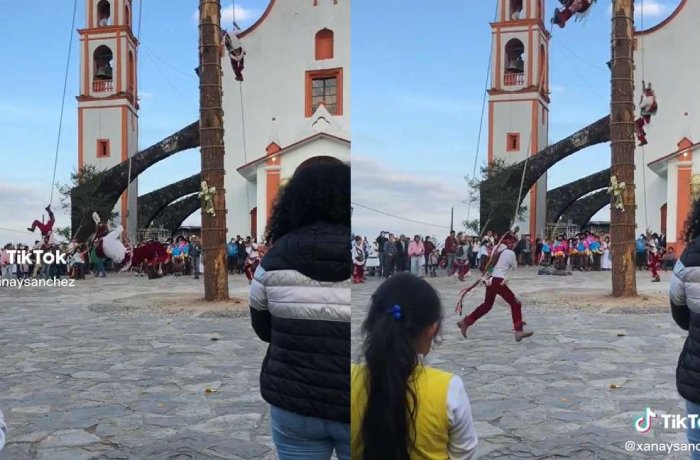 Las imágenes fueron dadas a conocer por la usuaria @Xanaysánchez en TikTok y muestran a un grupo de personas reunidas para disfrutar de la danza de los voladores de Papantla.