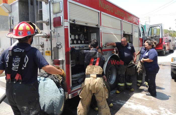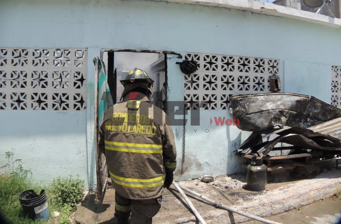 NUEVO LAREDO, TAM.- Un voraz incendio arrasó con dos viviendas en la privada Río de Janeiro, en la colonia Américo Villarreal Guerra, dejando pérdidas materiales superiores a los 200 mil pesos. Las llamas se originaron en el domicilio marcado con el número 2017 y se propagaron a la casa contigua.