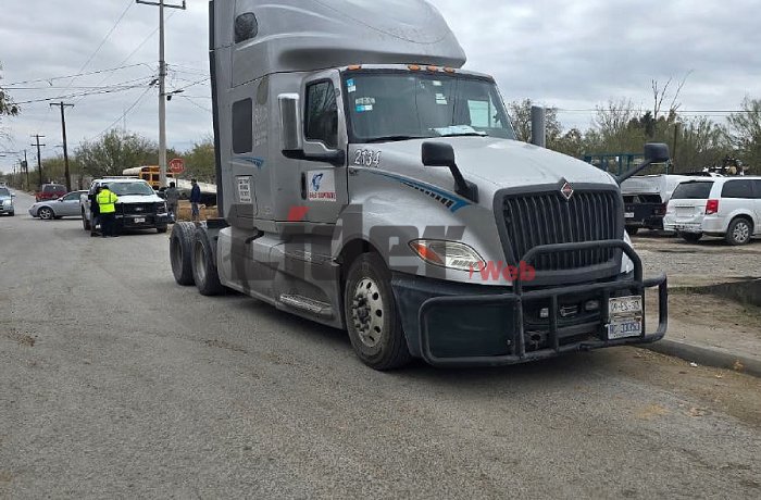 NUEVO LAREDO, TAM.- Un aparatoso percance vial registrado generó la movilización de cuerpos de auxilio y autoridades de tránsito, luego de que un automóvil particular terminara volcado tras colisionar con un tractocamión en un cruce urbano.