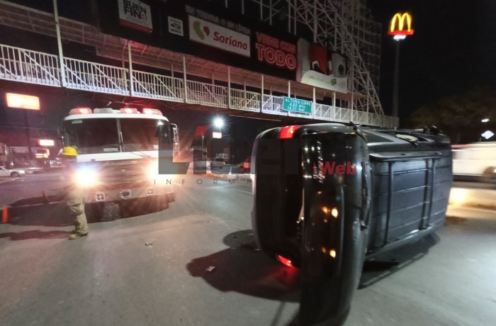NUEVO LAREDO, TAM.- Un aparatoso accidente vehicular se registró en el sector sur de la ciudad, donde una camioneta quedó volcada sobre la Avenida Reforma, metros después del crucero con la calle 15 de Septiembre, en la colonia Burócratas. Pese a la magnitud del incidente, la conductora resultó ilesa.