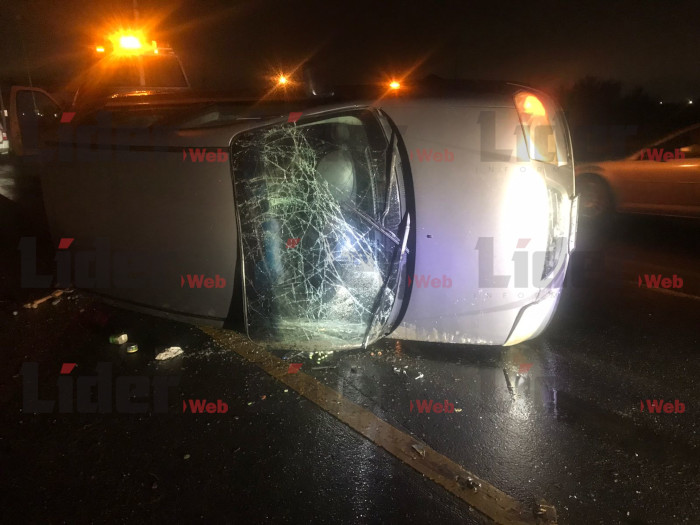 NUEVO LAREDO, TAM. – Como los limpiaparabrisas de su camioneta no funcionaban, el conductor de una camioneta no pudo ver bien al circular por la Carretera a Anáhuac, mientras llovía la noche del jueves, volcándose.